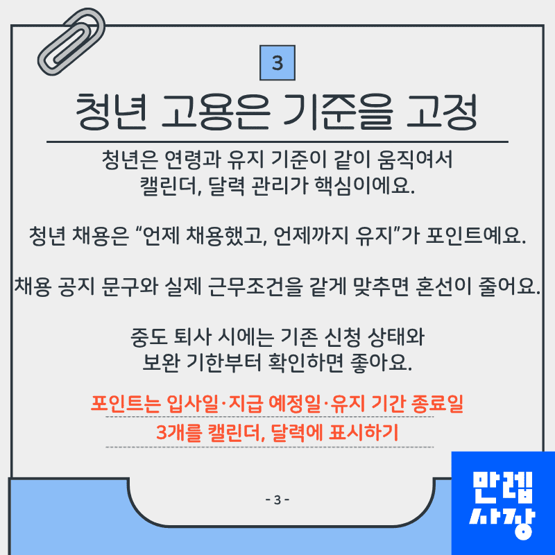 채용일을 기준으로 “언제까지 유지해야 하는지”를 표시해두면 실수를 줄일 수 있습니다.
