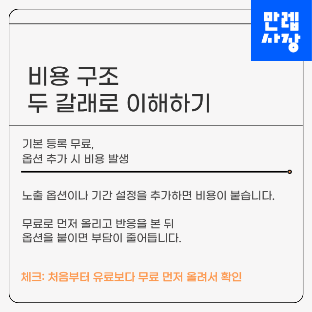노출 옵션이나 기간·지역 설정을 추가하면 비용이 발생할 수 있습니다.