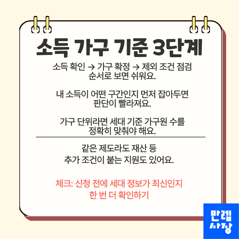 개인 기준과 세대 기준이 달라질 수 있으므로 기준 단위를 먼저 점검합니다.