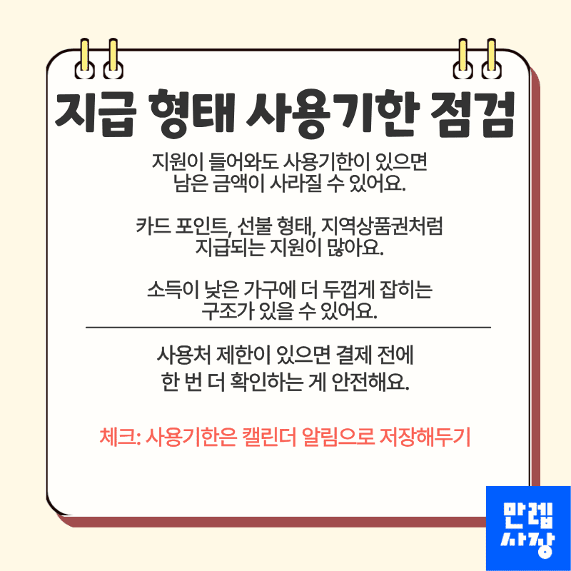 사용처 제한이 있다면 결제 전에 확인해 혼선을 줄입니다.