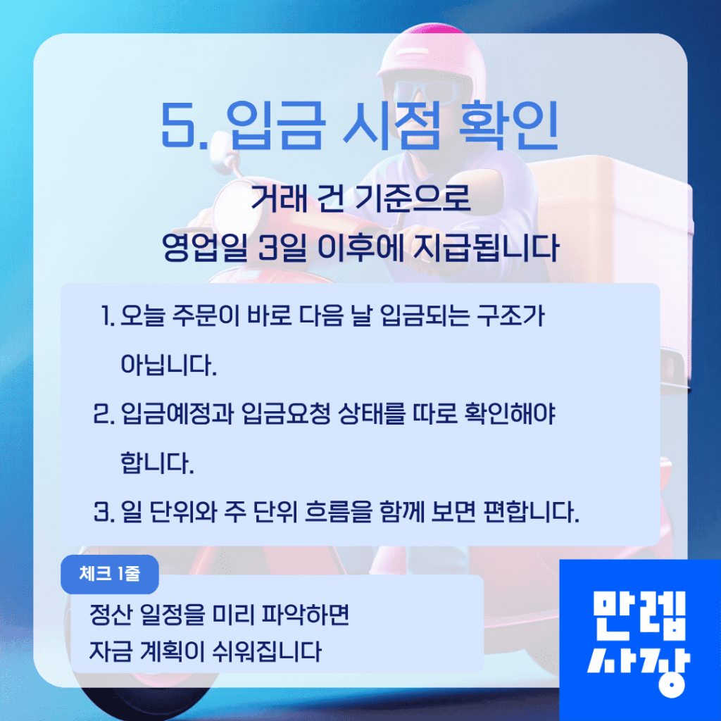 정산 구조를 이해한 뒤에는 매일 한 번 정산 화면을 확인하는 것만으로도 충분합니다.