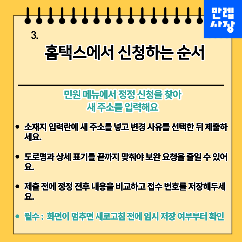 준비물 파일을 챙기고 홈택스에서 등록 수정까지 완료하면 생각보다 빠르게 정리됩니다.