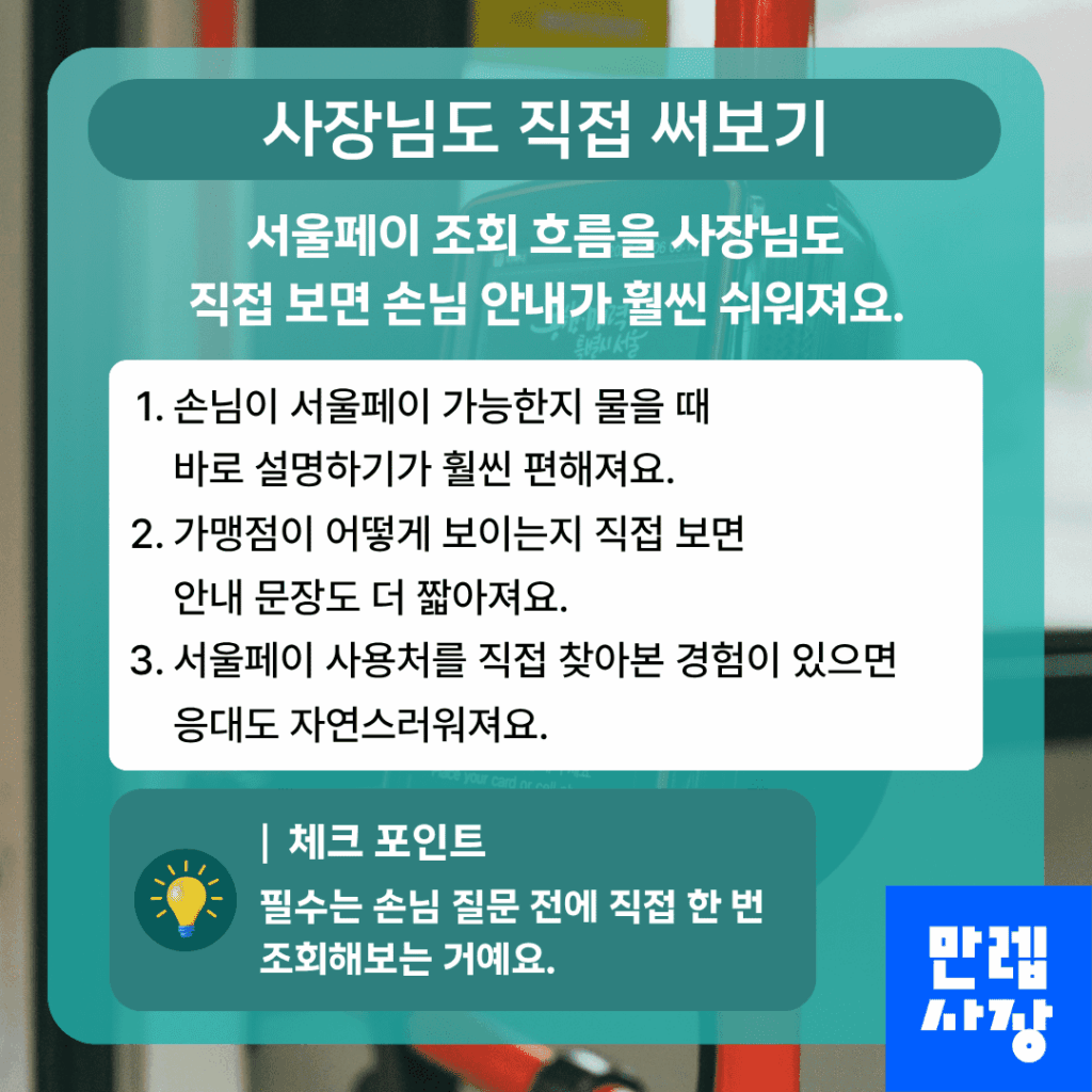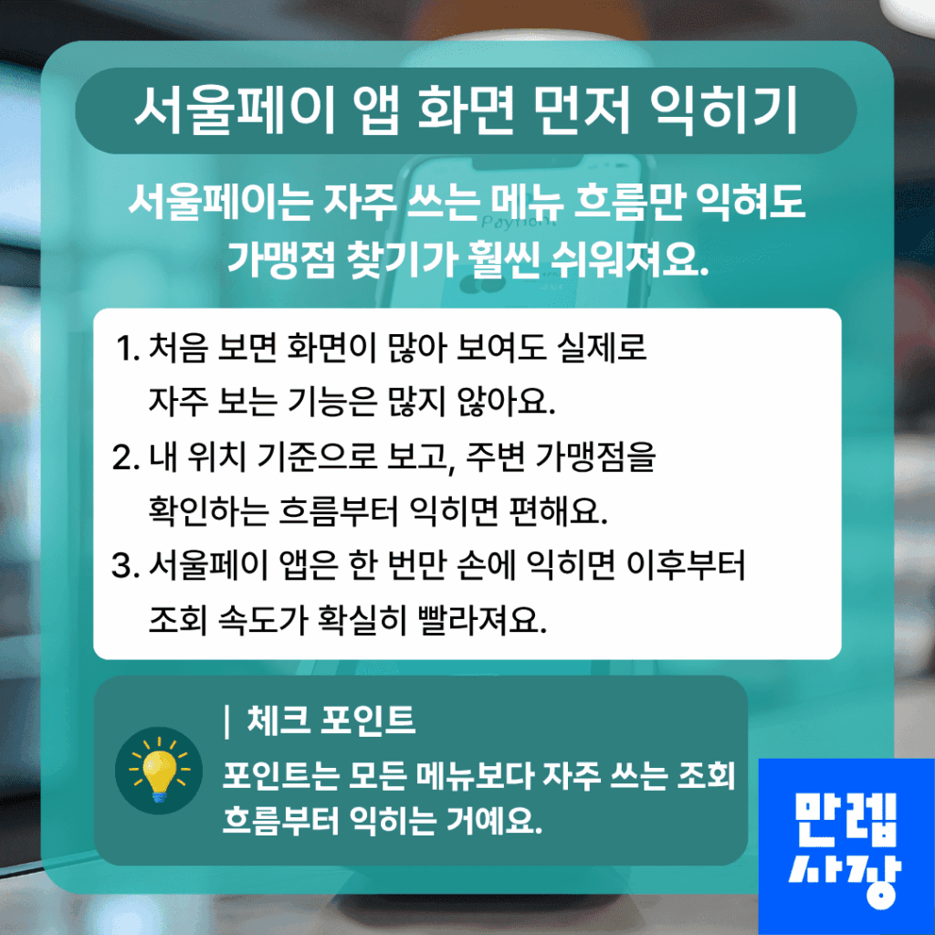작은 범위부터 익혀두면 서울페이 앱 활용 속도도 빨라지고, 매장 안내도 훨씬 자연스러워질 수 있습니다.