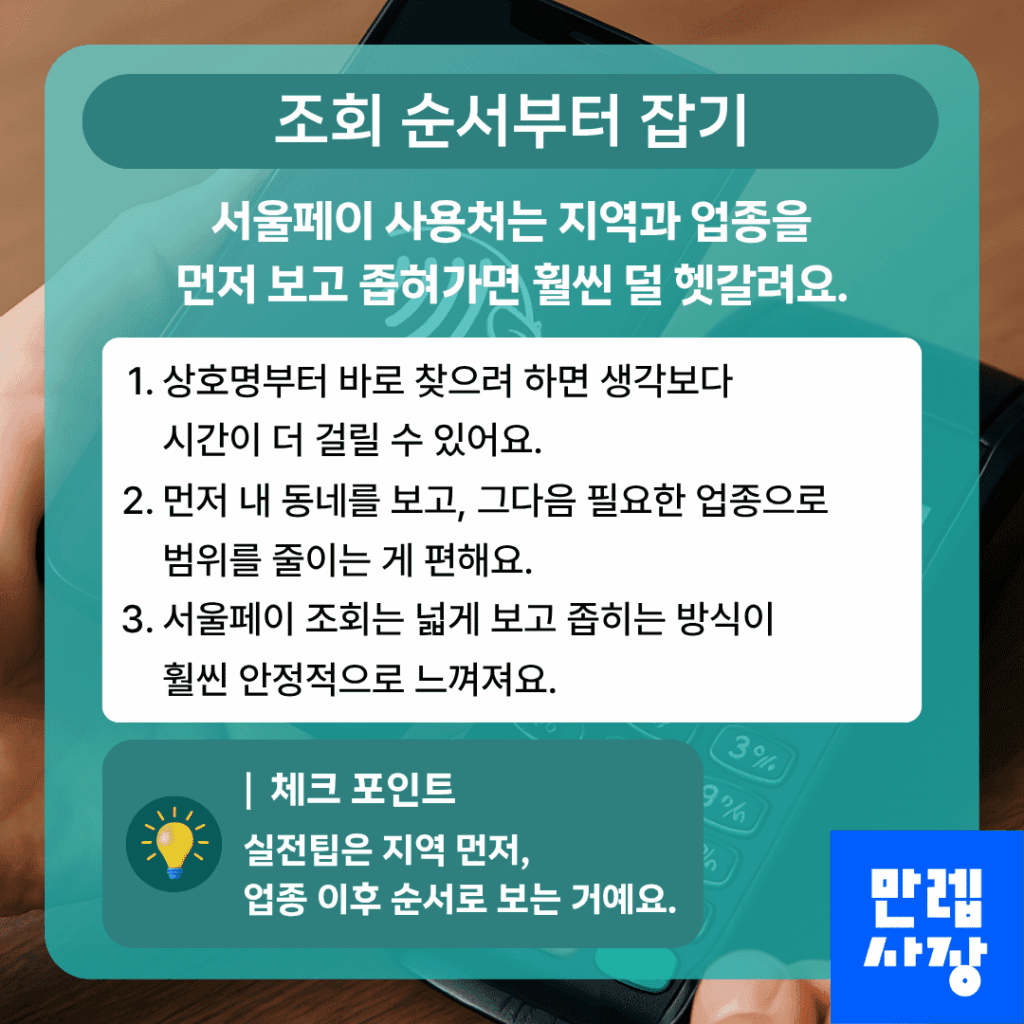서울페이 가맹점 사용처 찾기는 복잡한 기능을 외우는 일이 아니라 조회 흐름을 익히는 일에 가깝습니다.
