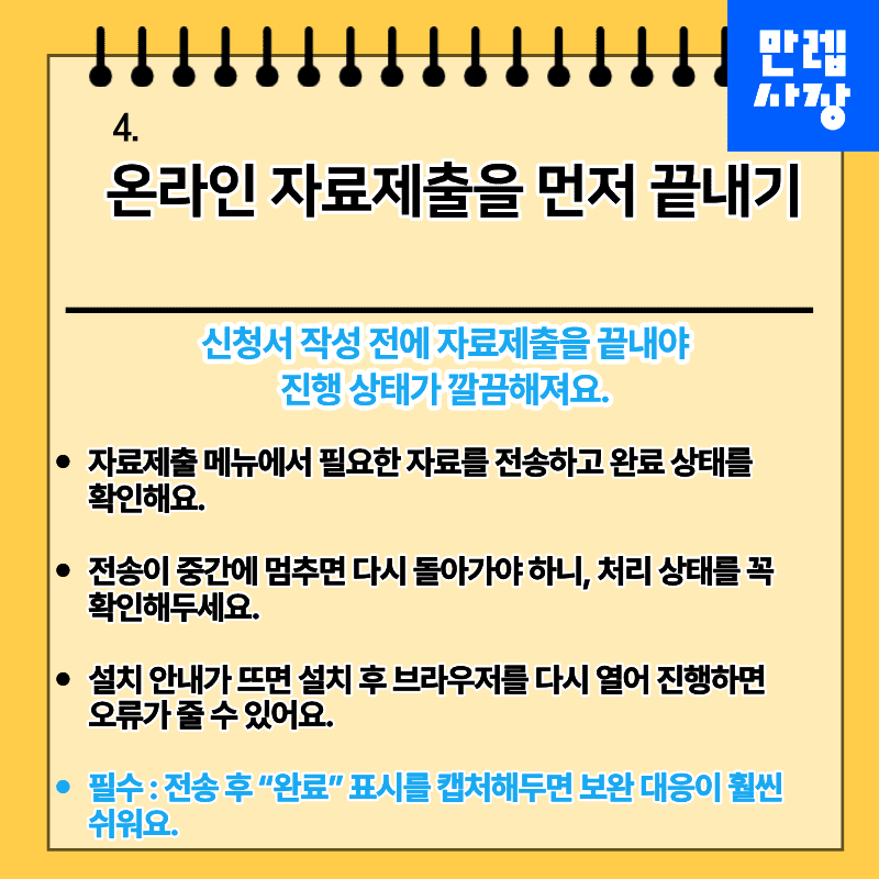 온라인으로 진행할 수 있지만, 인증과 자료제출 단계에서 지연되는 경우가 많습니다.