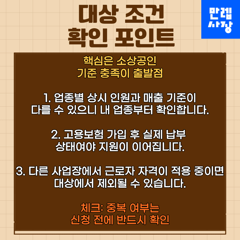다른 사업장에 근로자로 등록돼 있으면 제외될 수 있으므로 사전 확인이 필요합니다.