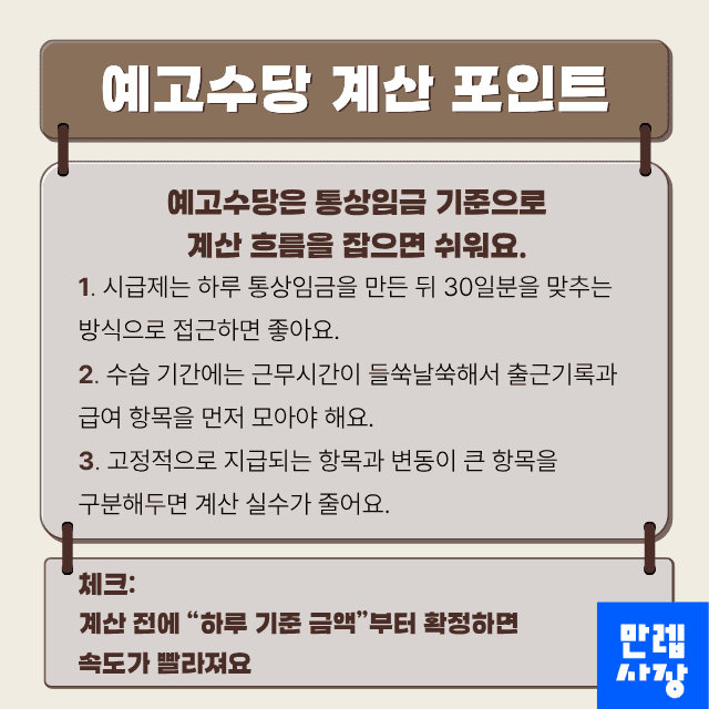 예고수당이 필요한 상황이면 통상임금 기준으로 계산 흐름을 먼저 잡습니다.