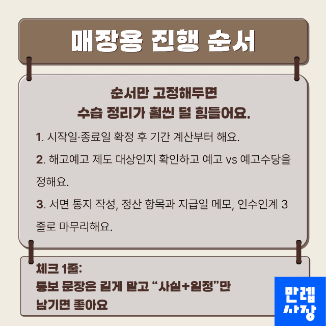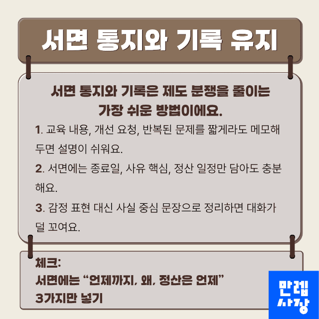 이때 고용을 정리해야 하는 상황이 생기면, 감정적인 대화보다 일정과 정산 기준을 먼저 맞추는 것이 안전합니다.