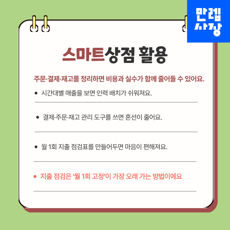 또 월 1회 지출 점검표를 운영하면 “추가 지출 발생 구간”을 조기에 파악해 비용을 안정적으로 관리할 수 있습니다.