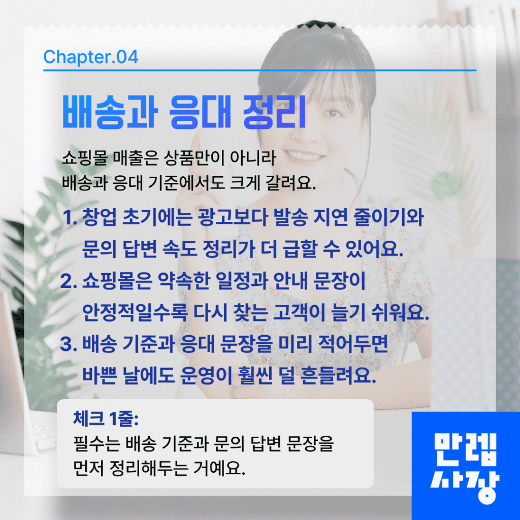 운영 초반에는 광고보다 배송 기준과 문의 응대 문장을 먼저 정리하는 것이 도움이 됩니다.