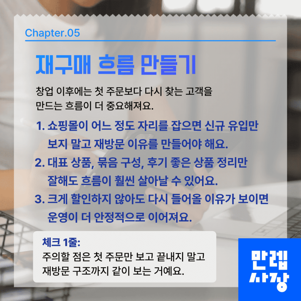 첫 주문을 만드는 것도 중요하지만, 다시 찾게 만드는 구조를 함께 보는 것이 더 중요합니다.