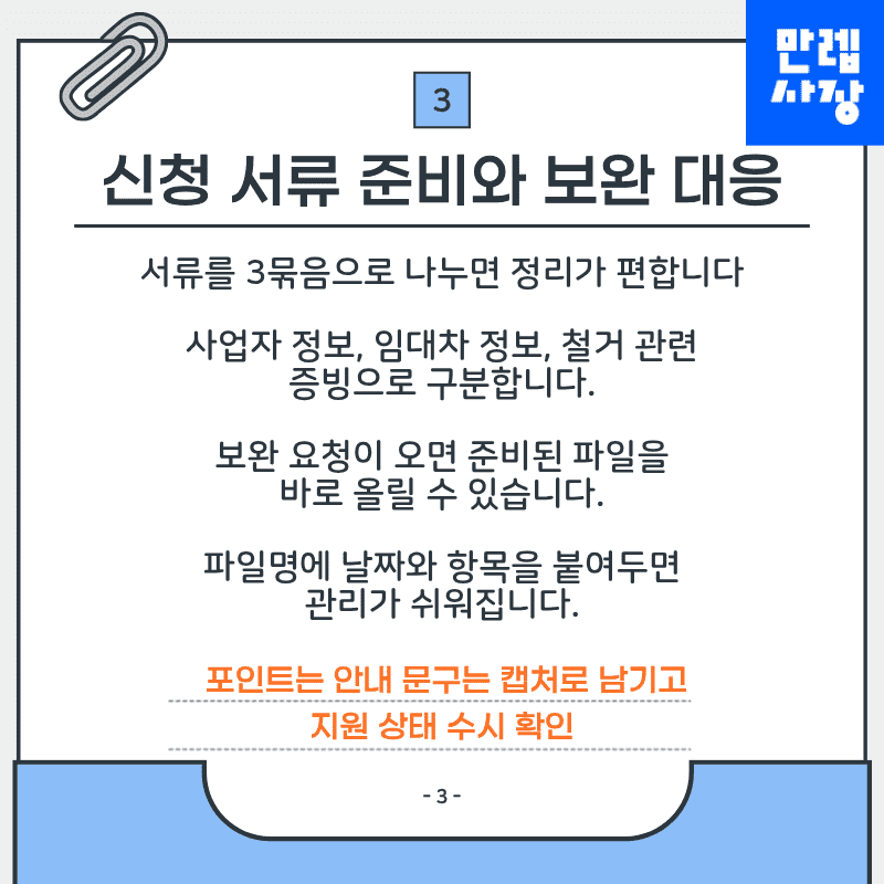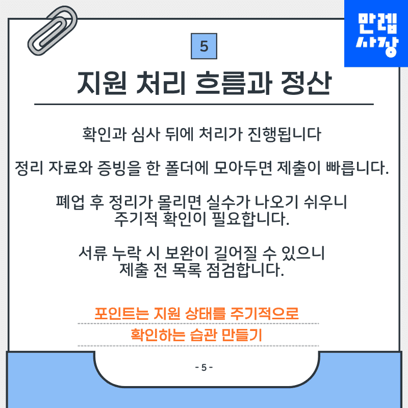 폐업 후 정리가 몰리면 실수가 발생하기 쉬우므로 지원 상태를 주기적으로 확인하시기 바랍니다.