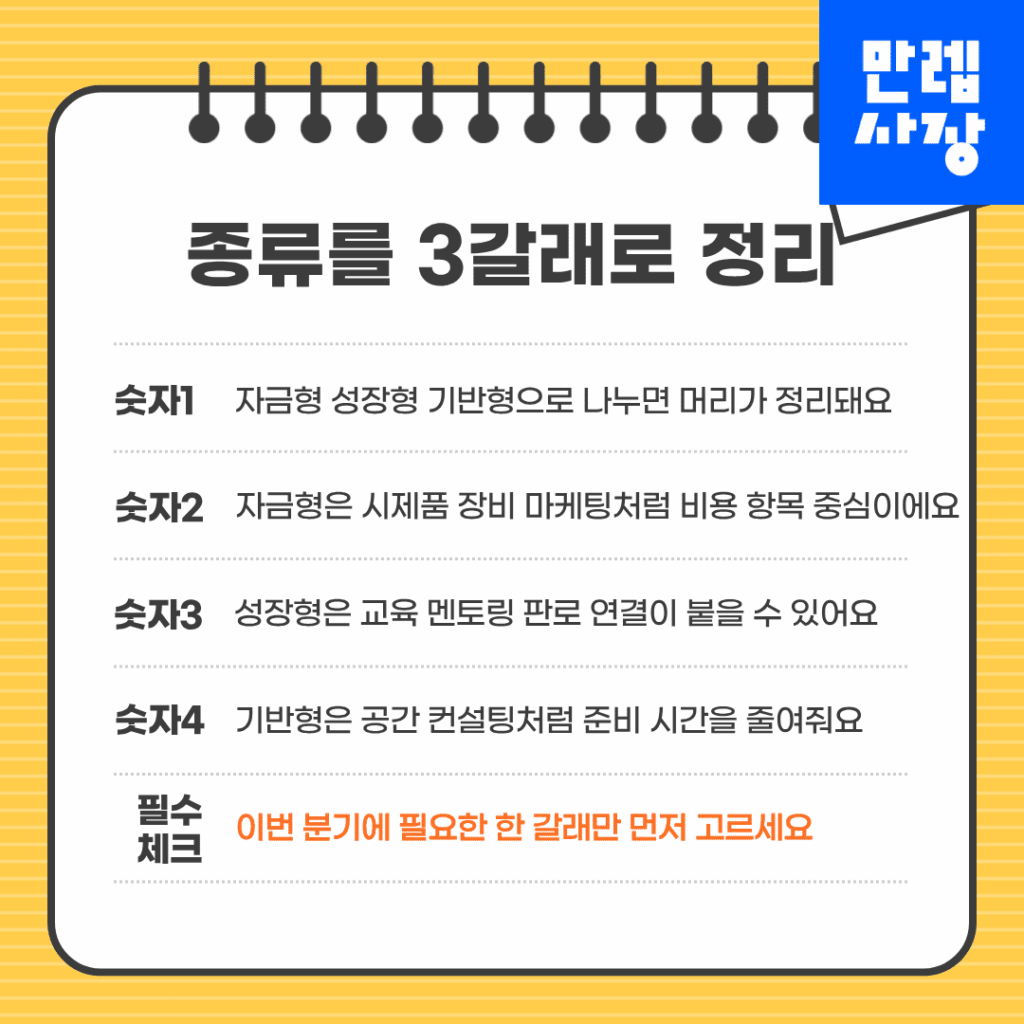 프로그램은 자금형, 성장형, 기반형으로 분류하면 핵심이 보입니다.