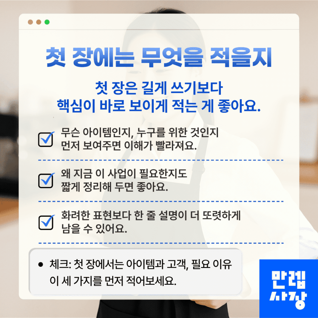 좋은 계획서는 어려운 표현이 많은 문서가 아니라 핵심이 명확한 문서입니다.
