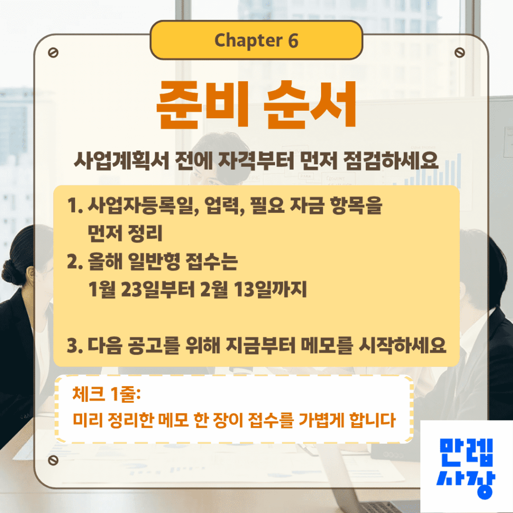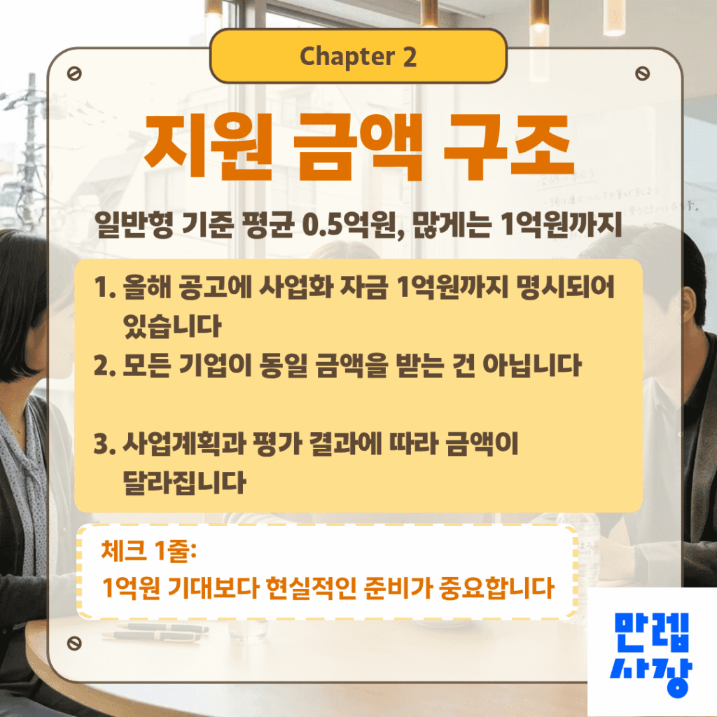 금액에 대한 기대만 앞세우기보다 사업 준비 수준과 실행 계획을 탄탄하게 갖추는 것이 실질적인 준비 방향입니다.