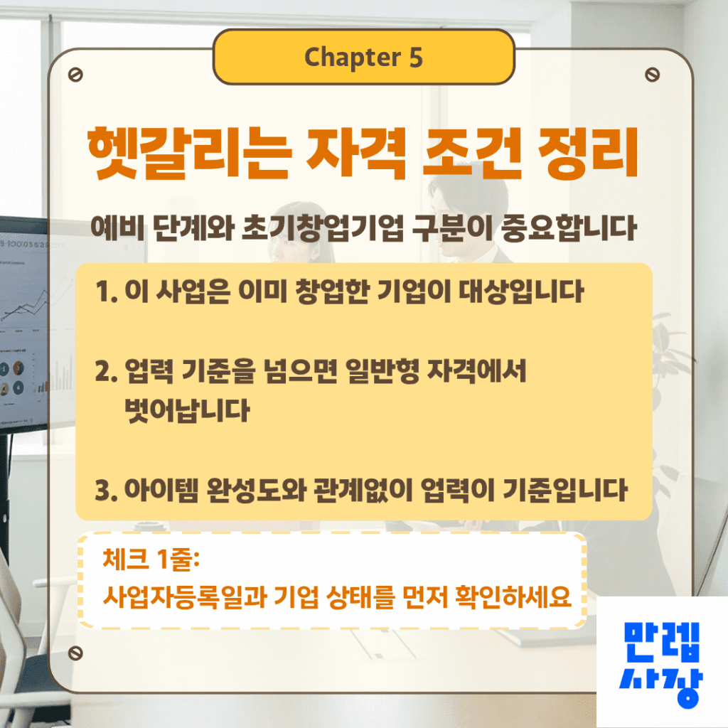 사업계획서 작성에 앞서 자격 요건을 먼저 점검하는 것이 효율적입니다.